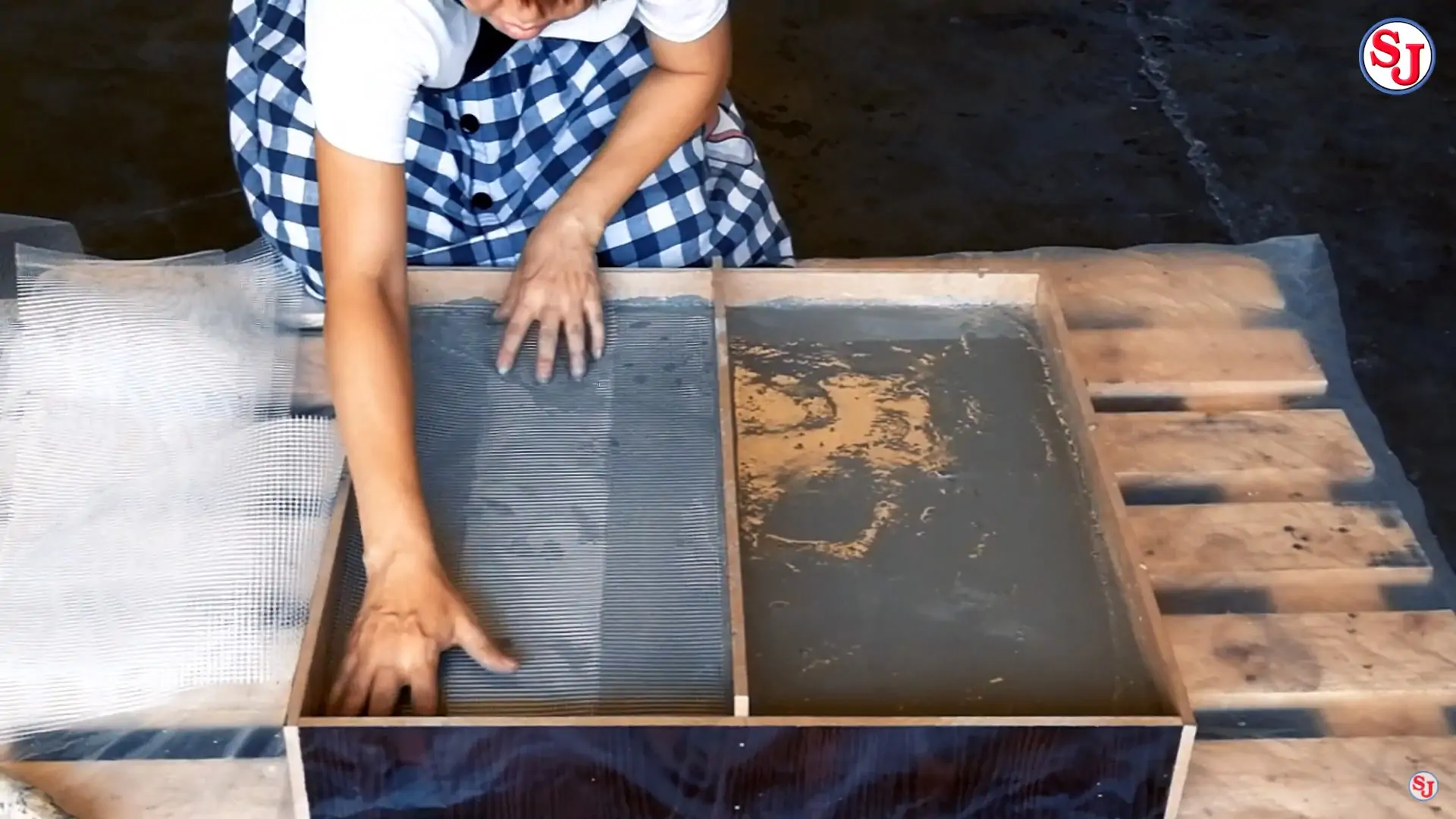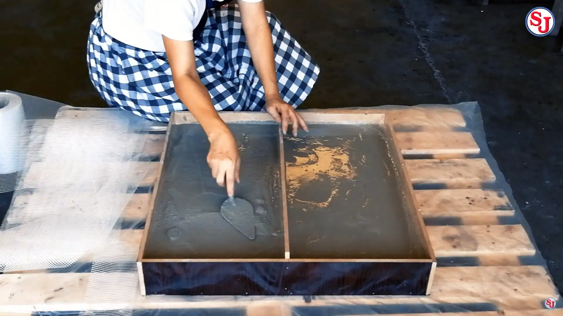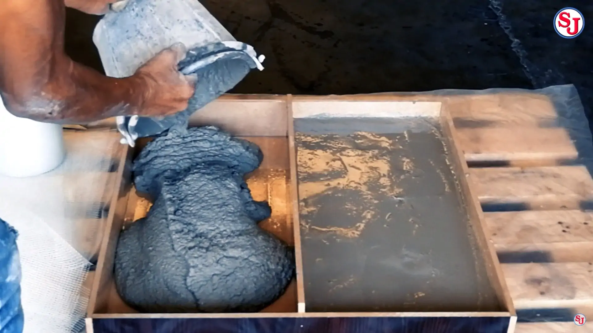 เมื่อผสมเข้ากันแล้วทำงการเทลงแบบและฉาบให้เรียบ