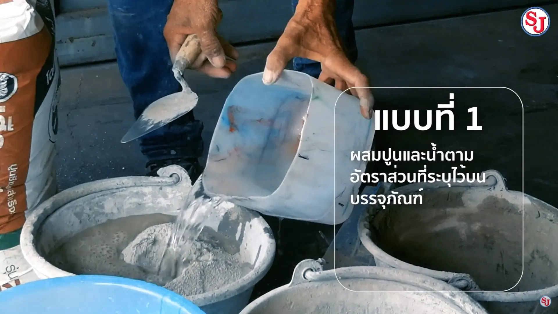 ผสมปูนและน้ำตามอัตราส่วนที่ระบุไว้บนบรรจุภัณฑ์